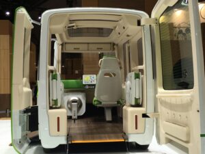 会社設立直前の2015年11月、ダイハツのコンセプトカー『NORIORI(ノリオリ)』を視察しました。ベビーカーや車椅子もそのまま乗れる「近未来のマルチユースコミューター」は、驚きと感動、そして大きな可能性を感じたことを思い出します。